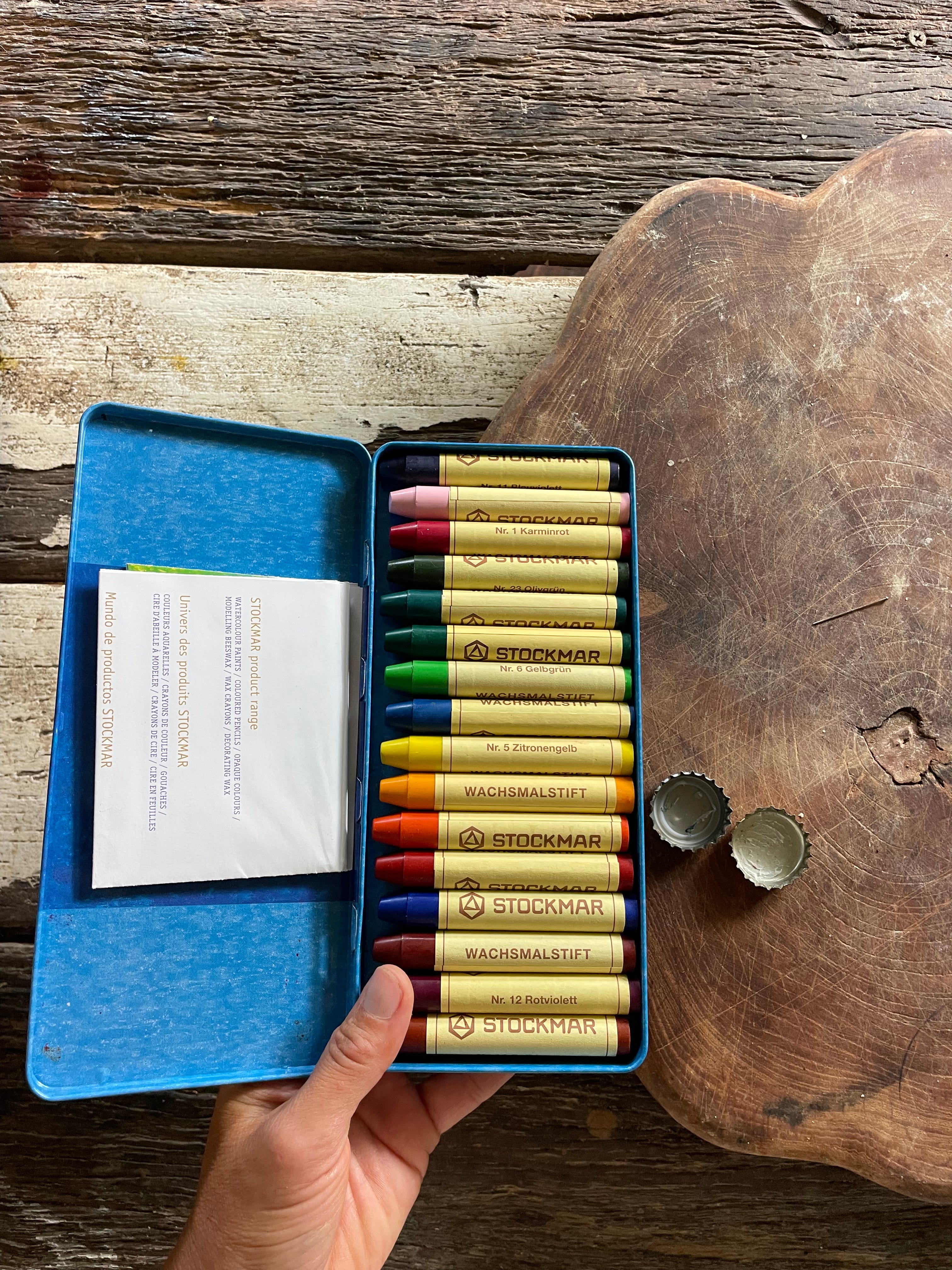For best results, use white eggs ( we were lucky with blue eggs this year from our chickens) , or naturally dye them first by boiling them in onion skins to get a warm brown colour, and let them dry fully before decorating. For the method, after the eggs are already dyed, melt different kids’ beeswax crayons (each colour in its own little container); you can use a small heatproof cup or even a beer bottle cup like you showed, just remove any plastic parts first and heat it very gently on the stove at a very low temperature, preferably sitting the cup in hot water so the wax melts slowly.