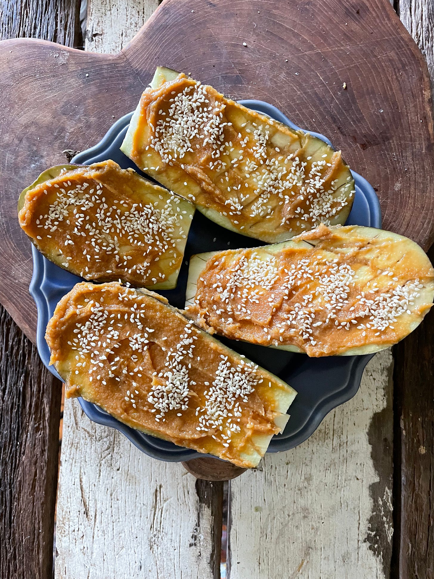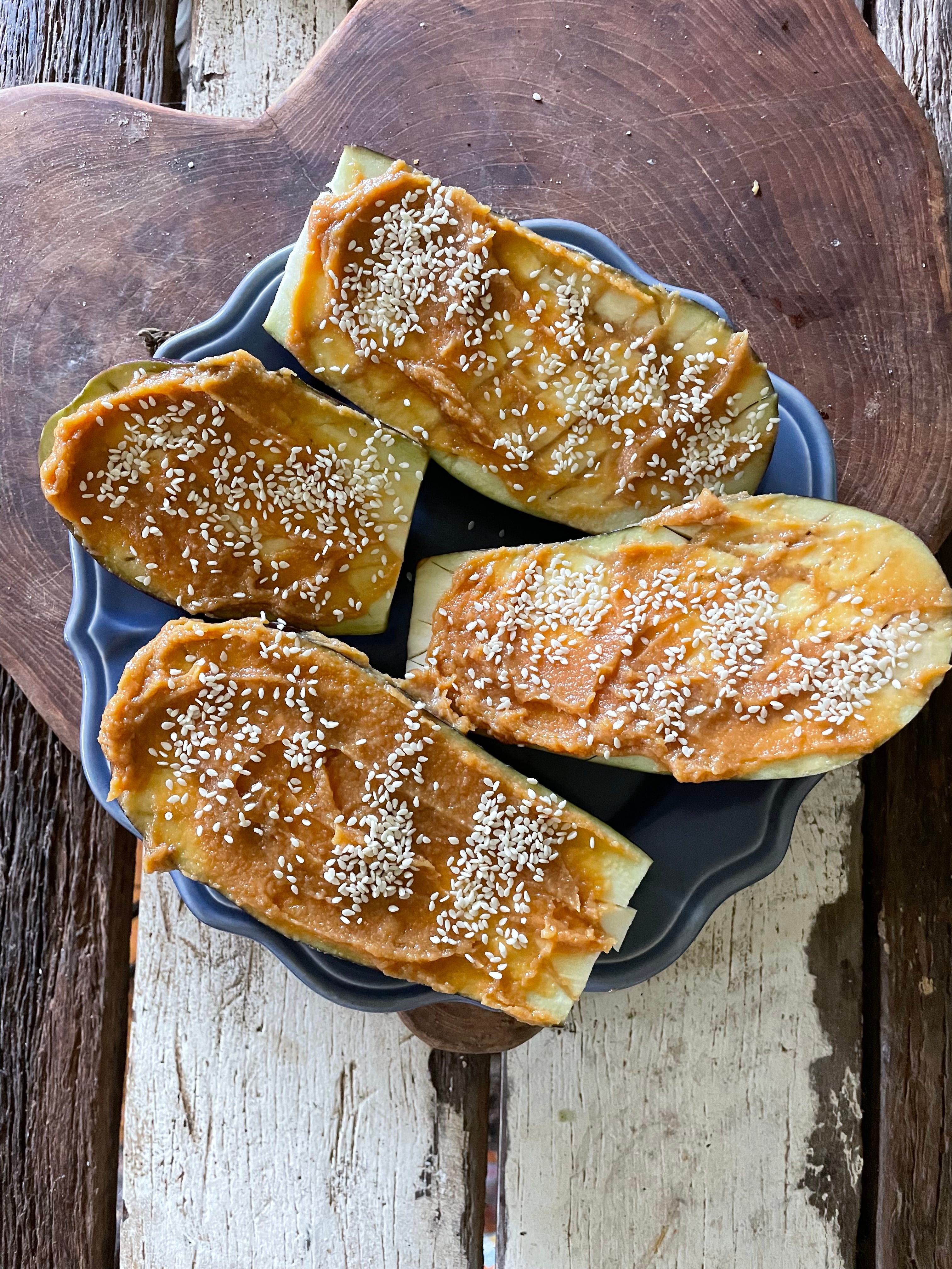 Today I’d love to share one of my favourite summer recipes : Miso Eggplants .