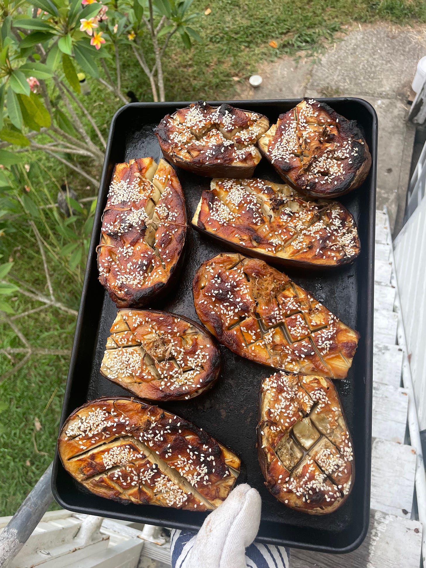 These eggplants turn meltingly soft, soaking up a savoury miso glaze that’s rich, grounding and deeply satisfying.