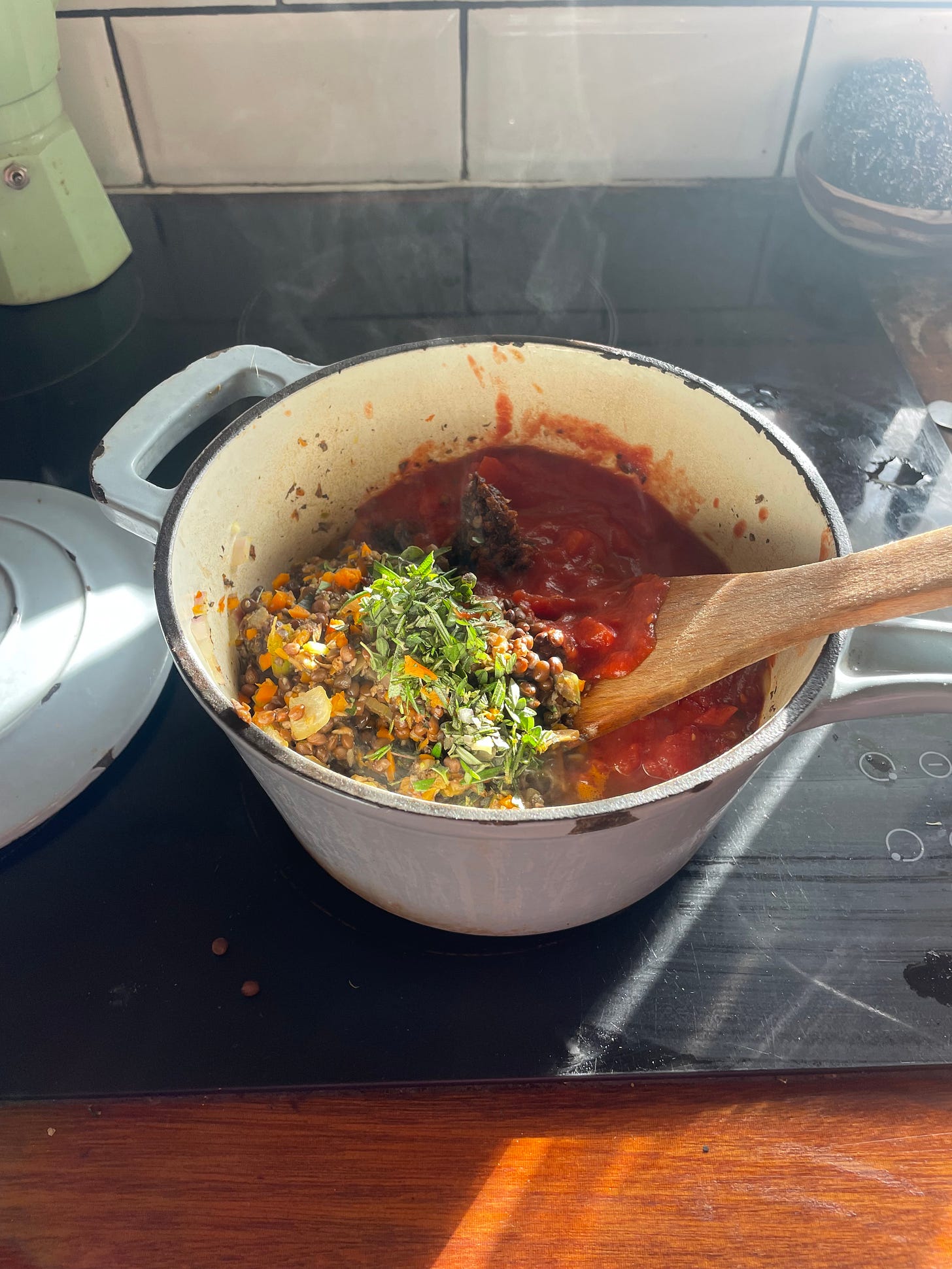 Over time, I began reworking our go-to recipes into more plant-based versions, still hearty, still satisfying, but built from whole ingredients. What I didn’t expect was that we’d ( he would) actually start preferring them. There’s something about layering vegetables, herbs, and slow-cooked flavours that creates a depth you don’t miss the meat in.