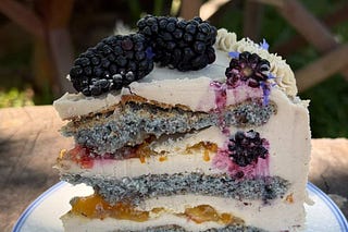 Blue Spirulina Almond Cake (soft as a song) with cashew icing
